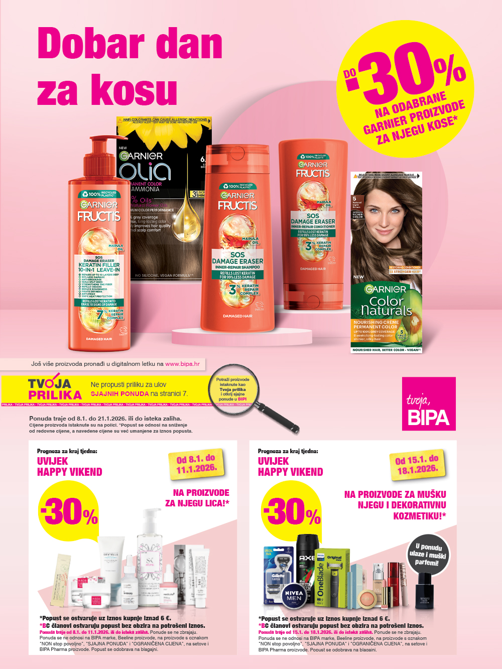 Ponuda se ne odnosi na BIPA MARKE i ne zbraja s ostalim ponudama, BIPACard programom vjernosti, BCdigital programom vjernosti i pogodnostima BIPO kluba. Popusti 1+1, 2 za 1, -50% i više se ne mogu kombinirati niti zbrajati s rođendanskim kuponom, kuponom godišnjice, kuponom dobrodošlice ili kuponom godišnjice na BCdigital kartici. U količinama za potrebe kućanstva. U ponudu nisu uključeni poklon paketi i proizvodi na rasprodaji. U navedene ponude ne ulaze proizvodi s oznakom “OGRANIČENA CIJENA”. Fotografije proizvoda su simbolične. Za eventualne tiskarske pogreške ne odgovaramo. Popust se odnosi na sniženje od redovne cijene. Navedene cijene su već umanjene za iznos popusta.