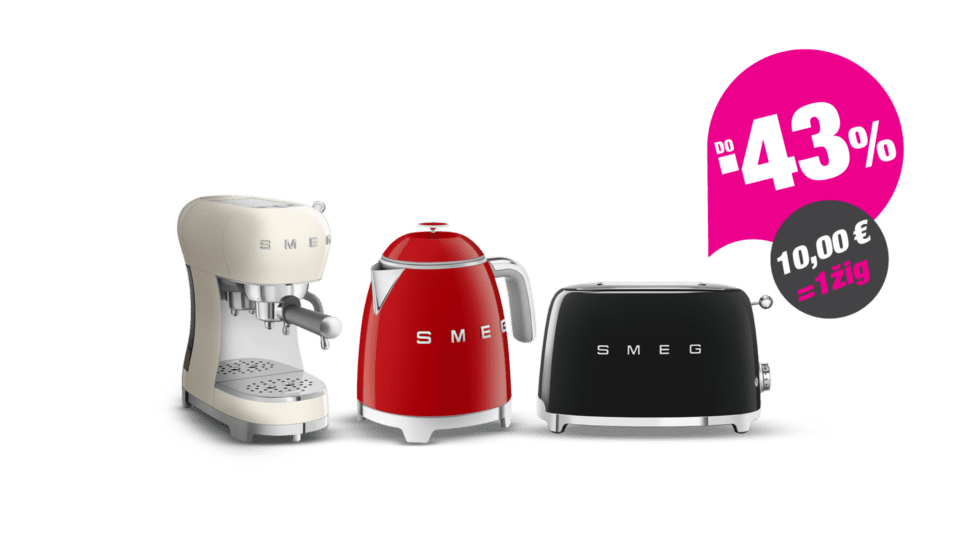 U periodu od 31.1. do 19.4.2026. svaka kupnja u iznosu od 10€ donosi ti 1 žig u knjižici. Kada skupiš određen broj žigova, ostvaruješ do 43% popusta na Smeg proizvode. Skupljene žigove iskoristi do 19.4.2026.